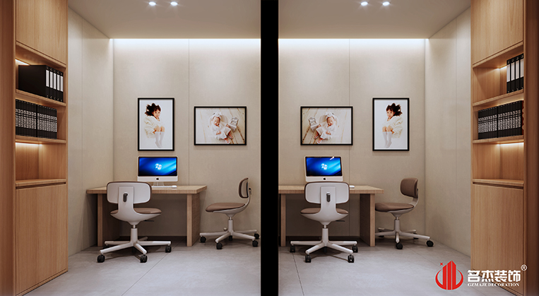 設(shè)計(jì)團(tuán)隊(duì)在前臺區(qū)域使用比以往更多的圓弧形元素來作為辦公室裝修設(shè)計(jì)空間的主打設(shè)計(jì)要素,來避免孩子們碰傷的可能性,這樣的做法也是能夠讓空間的設(shè)計(jì)感更加強(qiáng)烈。家具的選擇上面也是選擇較為百搭的白色和原木色作為主要方向,呼應(yīng)空間的同時(shí),還能夠增加空間的設(shè)計(jì)層次感。而其他區(qū)域則是選擇較為常規(guī)的做法,通過對材質(zhì)的選擇,打造出不同以往的設(shè)計(jì)風(fēng)格。整體空間給人的感覺就是舒適,簡約而不簡單,同時(shí)也能夠符合兒童攝影的定位。